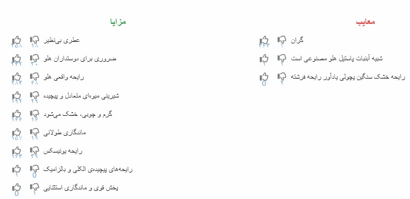 نظرات کاربران در بررسیها هم اشاره دارند که ماندگاری و پخش بسته به شخص و فصل متفاوت است، اما بهطور کلی خوب تا قابل قبول گزارش شده.