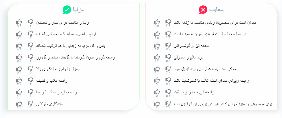 نسخه زنانه از رایحهای خنک برخوردار است وبوی گلی در آن وجود دارد.