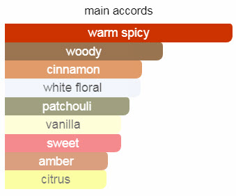 نتهای اولیه آن فلفل قرمز و دارچین؛ نتهای میانی آن شکوفه پرتقال و نعناع هندی؛ و نتهای پایه آن دانه تونکا و سدر هستند.
