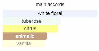 نتهای اولیه آن شامل شکوفه پرتقال و ترنج؛ نتهای میانی آن شامل گل مریم و یاس هندی؛ و نتهای پایه آن شامل وانیل ماداگاسکار، مشک سفید و سدر ویرجینیایی است.