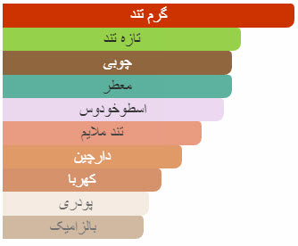 ![]() کهربا | ![]() پچولی(نعناع هندی) | ![]() وتیور هائیتی(خس خس) |